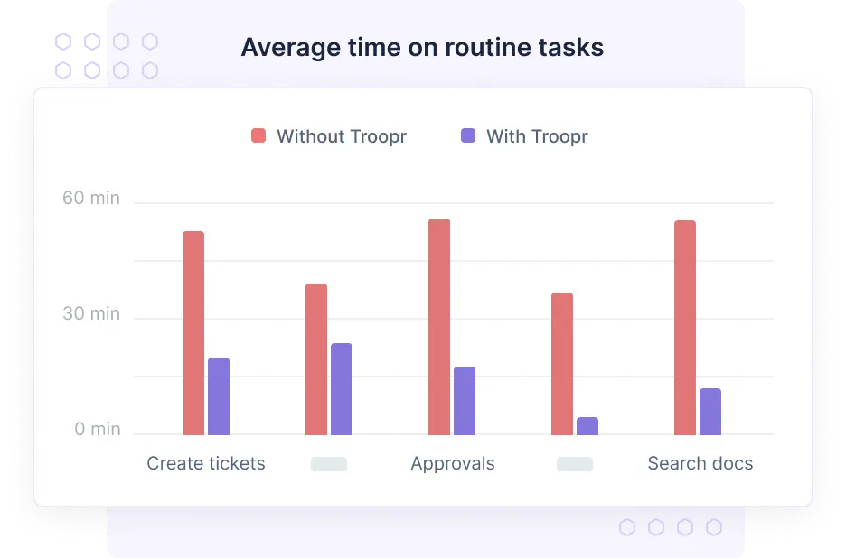 By connecting Slack and Jira, automating reports, and logging every decision, Troopr ensures measurable, compliant hybrid operations.